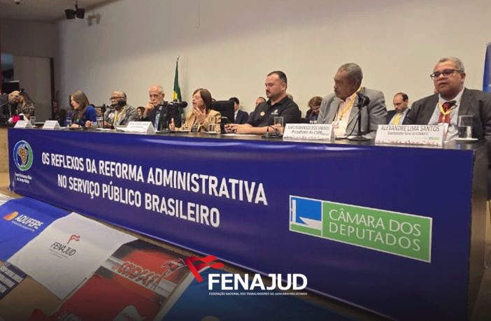 A Fenajud (Federação Nacional dos Trabalhadores do Judiciário nos Estados) participou da audiência pública, realizada na terça-feira (25), pela Comissão de Administração e Serviço Público da Câmara dos Deputados, que tratou sobre os impactos da reforma administrativa no serviço público brasileiro. A Federação contou com assento na mesa principal. Participaram os coordenadores Alexandre Santos, Eduardo Couto, e as coordenadoras Danyelle Martins e Adriana Toscano das discussões sobre as mudanças propostas. A audiência foi solicitada pela Deputada Federal Alice Portugal (PCdoB-BA), que destacou a importância de um debate amplo e qualificado devido à complexidade da reforma.