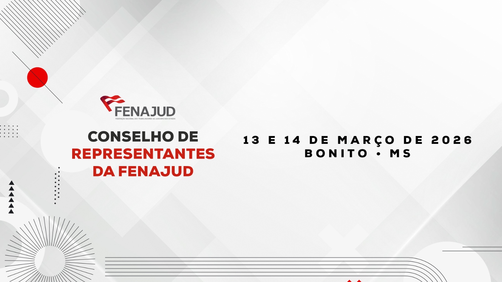 A Federação Nacional dos Trabalhadores do Judiciário nos Estados (Fenajud) enviou aos sindicatos de base o Edital de Convocação para a Reunião do Conselho de Representantes das entidades filiadas, que será realizada nos dias 13 e 14 de março de 2026, na cidade de Bonito, no Mato Grosso do Sul. A convocação é dirigida aos membros da Coordenação Executiva Colegiada da FENAJUD e aos(às) presidentes ou coordenadores-gerais dos sindicatos filiados, ou a um(a) representante indicado(a) por cada entidade, conforme previsto no Estatuto Social da Federação. Cada sindicato terá direito a um(a) representante com direito a voto.