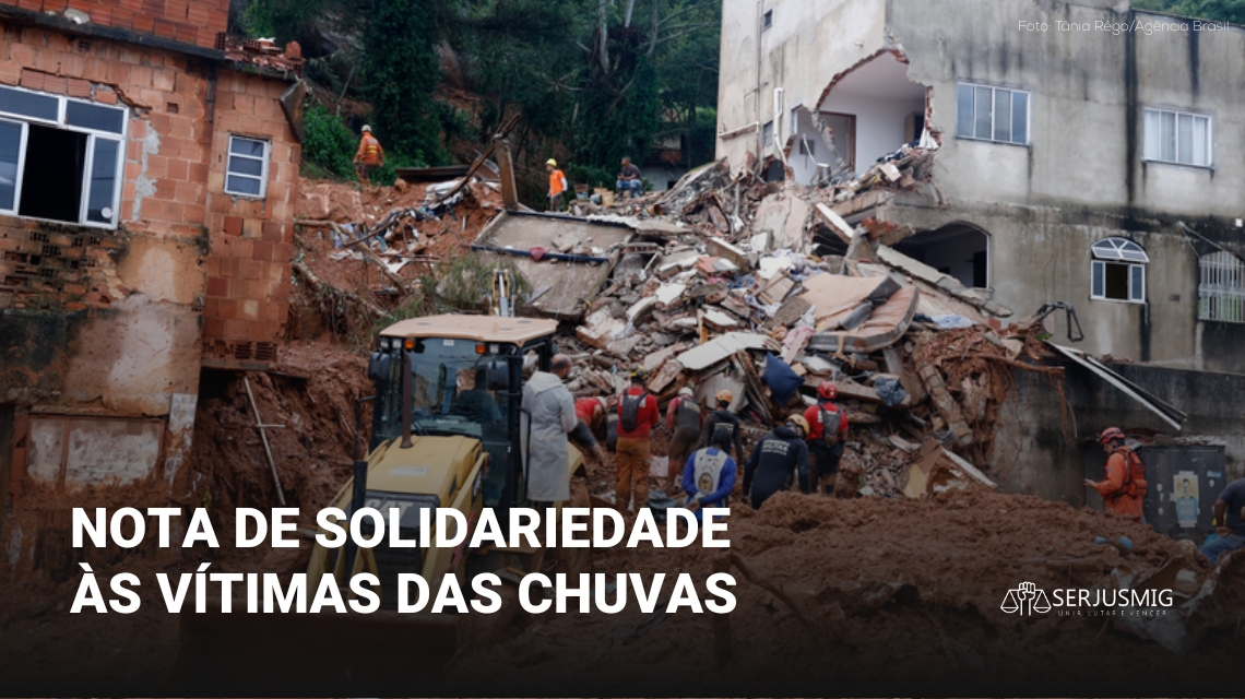 O SERJUSMIG expressa sua solidariedade a todas as vítimas e as famílias afetadas pelas chuvas na Zona da Mata de Minas Gerais. Nesse momento doloroso e incerto, a entidade oferece suas condolências aos que perderam entes queridos. O Sindicato também se soma aos esforços para ajudar na mitigação dos danos.